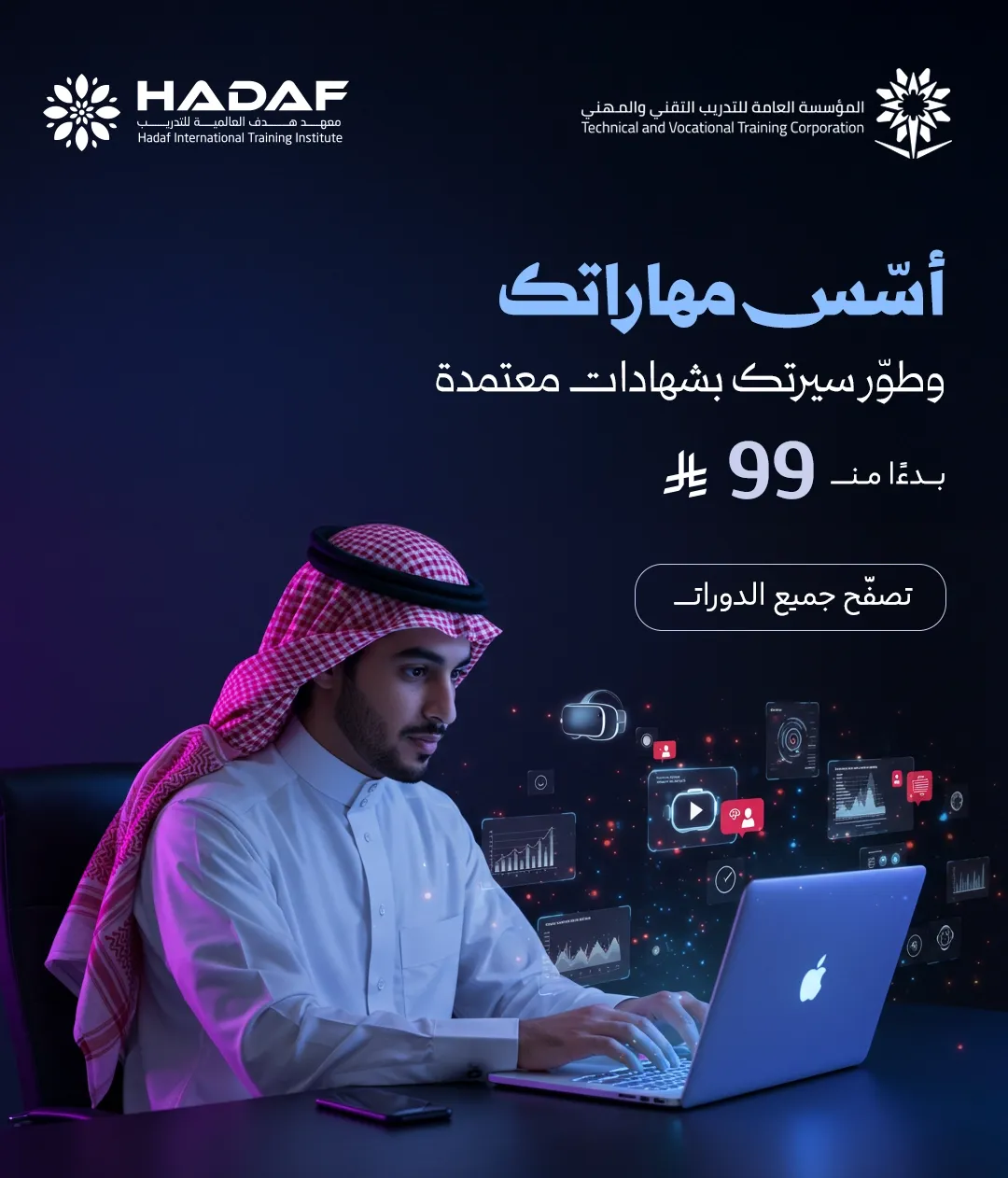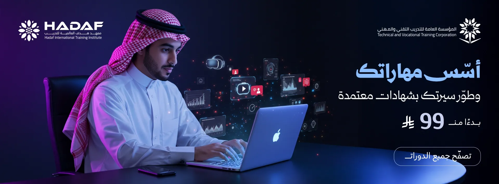 البرامج التدريبية مصممة لتزويد المتدربين بالمهارات التي يحتاجها سوق العمل، وتنمية قدراتهم العملية والنظرية، بما يساعدهم في التميز بوظائفهم الحالية أو الحصول على فرص وظيفية جديدة.