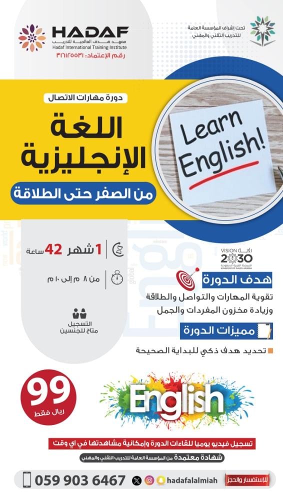 لا تدع الفرصة تفوتك، احصل على أقوى دورة إنجليزي معتمدة من منصة هدف طريقك لاكتساب مهارات تواصل قوية مع شهادة معتمدة