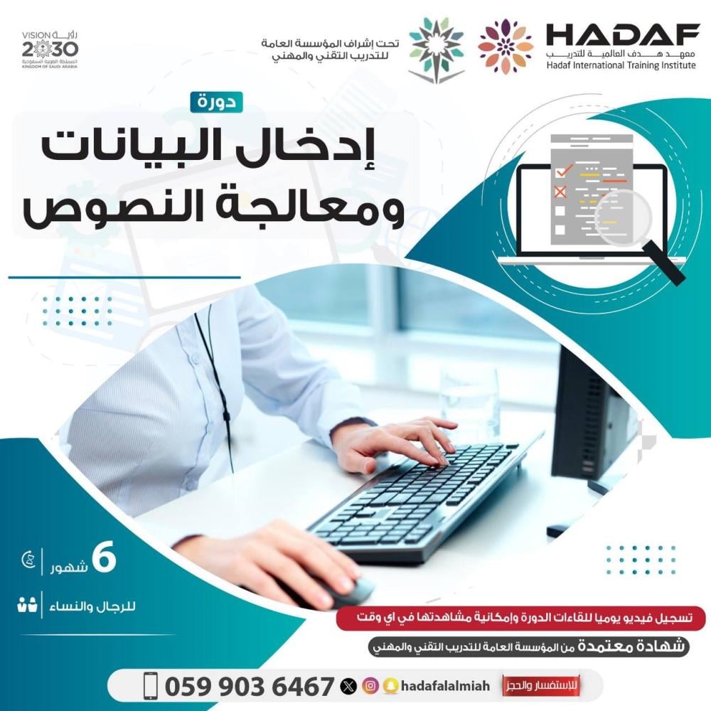 دورة إدخال بيانات ومعالجة نصوص معتمدة –6 شهور حضوري
