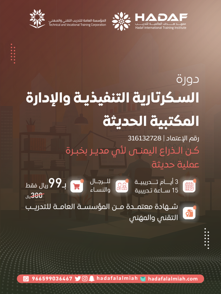 🔹 اسم الدورة: السكرتارية التنفيذية والإدارة المكتبية الحديثة