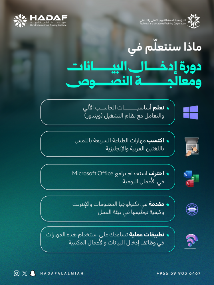 📢 طوّر مستقبلك المهني خلال 6 أشهر فقط مع دورة إدخال البيانات ومعالجة النصوص المعتمدة!